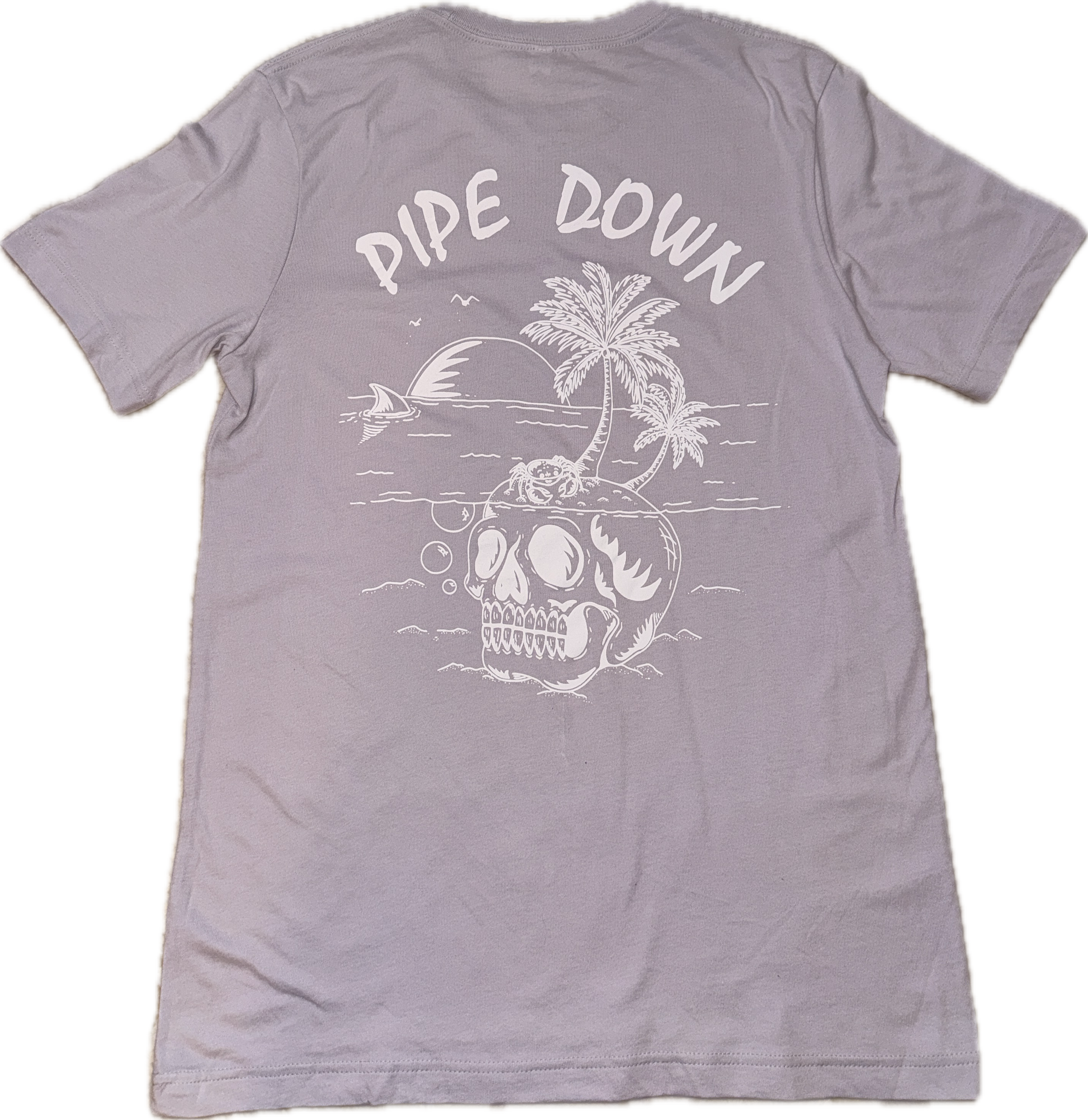 Add a splash of edgy style to your wardrobe with the Pipe Down Island Skull T-Shirt. Crafted from a comfortable cotton blend in a soft light violet hue and designed by MAR.CE ART, it brings a unique artistic flair that stands out while staying effortlessly cool. Perfect for expressing your bold side with a playful twist.